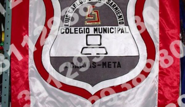 Banderas para la intemperie banderas con escudo bordado, también las banderitas de escritorios. banderines institucionales, deportivos, decorativos, promocionales para colegios, para universidades, festivales o bandas musicales.